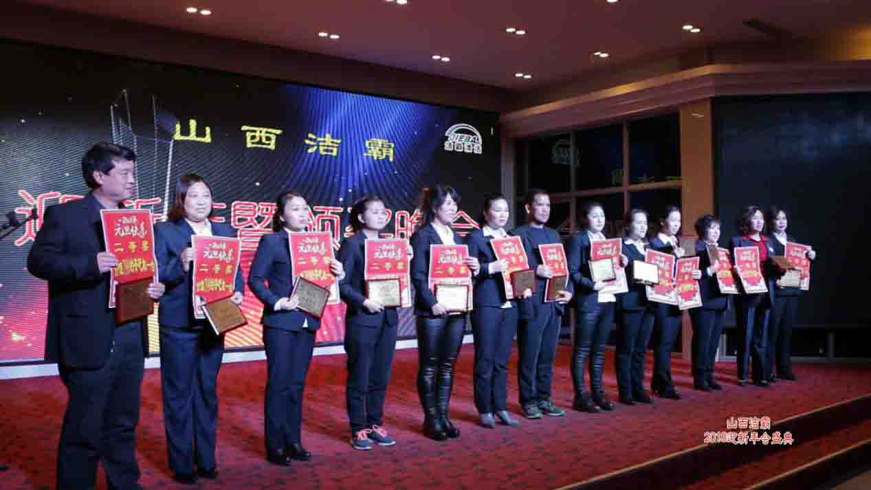 潔霸公司一直以來始終堅持“服務鑄就品牌,專業(yè)鑄就權威”的經營理念,在這次的年會現(xiàn)場,公司同時也對員工進行了表彰。首先由公司副總經理史志霞宣讀2017年表彰決定及獲獎名單,在這次表彰中公司設立了4個優(yōu)秀集體獎和37個優(yōu)秀個人獎,并對獲獎人員給予了精神上和物質上的鼓勵,隨著獎項的頒布不斷地掀起年會的高潮。