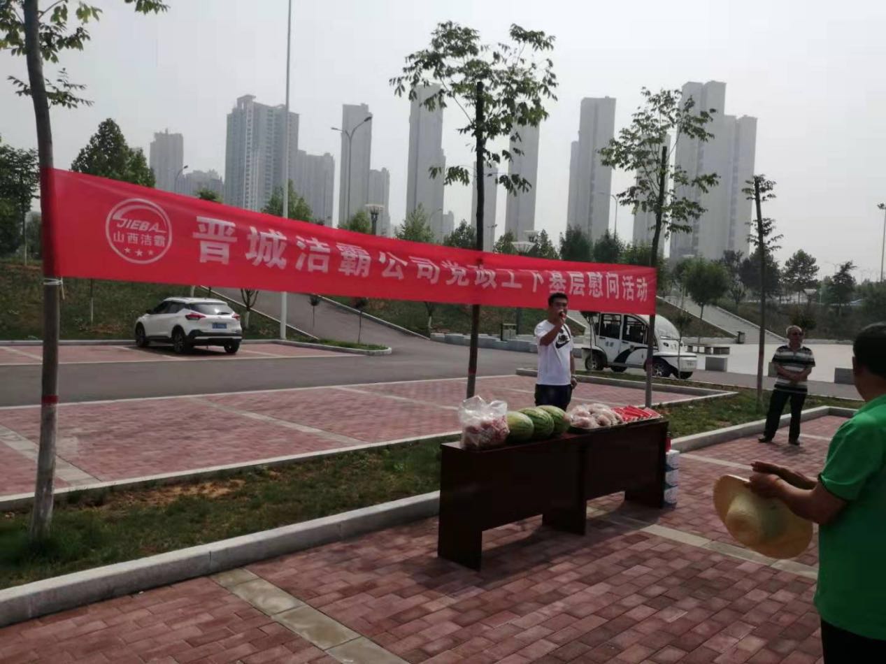 暑期盛夏,赤日炎炎7月19日上午,晉城潔霸公司黨政工暑期“情系一線”下基層慰問系列活動(dòng)啟動(dòng)。在工會(huì)主席崔偉同志率領(lǐng)下,慰問活動(dòng)小組首站來到了晉城市帶狀公園,看望了辛勤奮戰(zhàn)在園林一線的員工,給員工送去了面包、西瓜、白糖等慰問品,表達(dá)了公司領(lǐng)導(dǎo)的親切關(guān)懷。