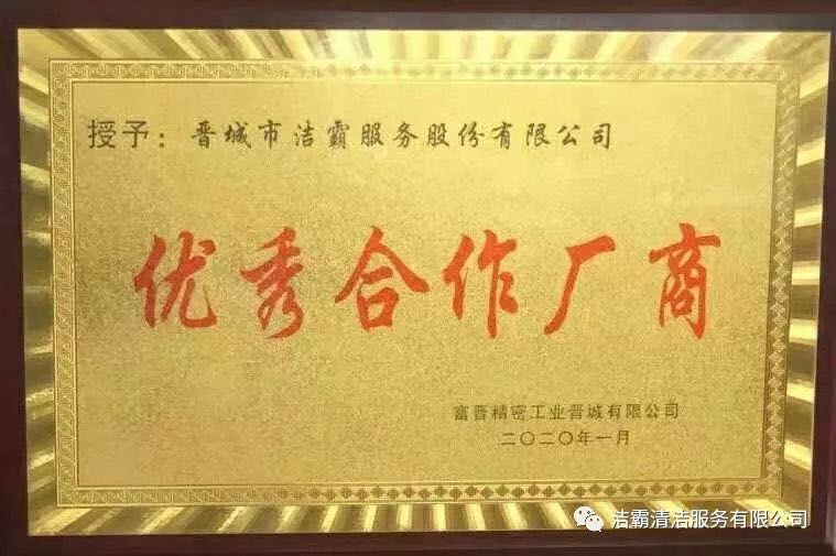 1月21日,富士康(晉城)科技工業(yè)園區(qū)召開(kāi)2019年綠化環(huán)衛(wèi)服務(wù)廠商表彰大會(huì)。會(huì)上,我公司喜獲“優(yōu)秀合作廠商”稱號(hào)。