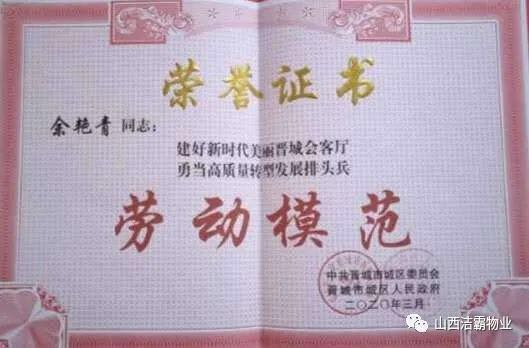 3月29日上午,晉城市城區(qū)2019年度全區(qū)勞動模范表彰大會在在城區(qū)政府中院召開,來自全區(qū)各個行業(yè)、各條戰(zhàn)線的174個先進(jìn)集體和223名勞動模范受到表彰。我公司工程部主管余艷青同志榮膺“勞動模范”稱號。