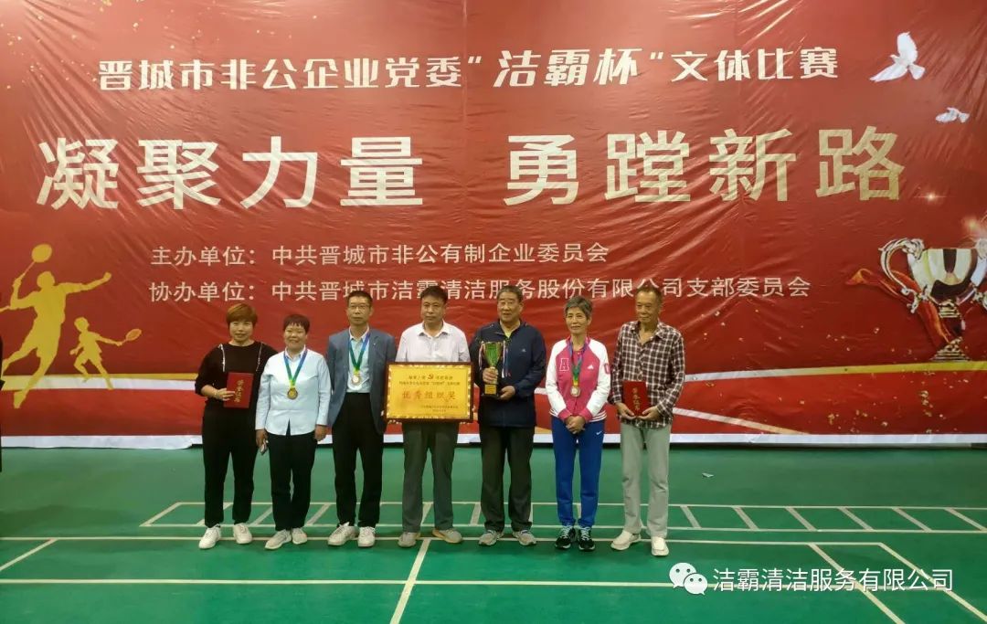 9月25日下午,晉城市非公企業(yè)黨委“潔霸杯”文體比賽落下帷幕。此次比賽由中共晉城市非公有制企業(yè)委員會主辦,中共晉城市潔霸清潔服務(wù)股份有限公司支部委員會冠名協(xié)辦。此次活動的主題是“凝聚力量 勇蹚新路”,旨在新中國成立71周年之際,全面展示非公企業(yè)黨組織開展群眾性體育活動的豐碩成果,以及廣大黨員干部創(chuàng)先爭優(yōu),奮發(fā)進(jìn)取,勇蹚新路,爭做時代先鋒的精神風(fēng)貌。