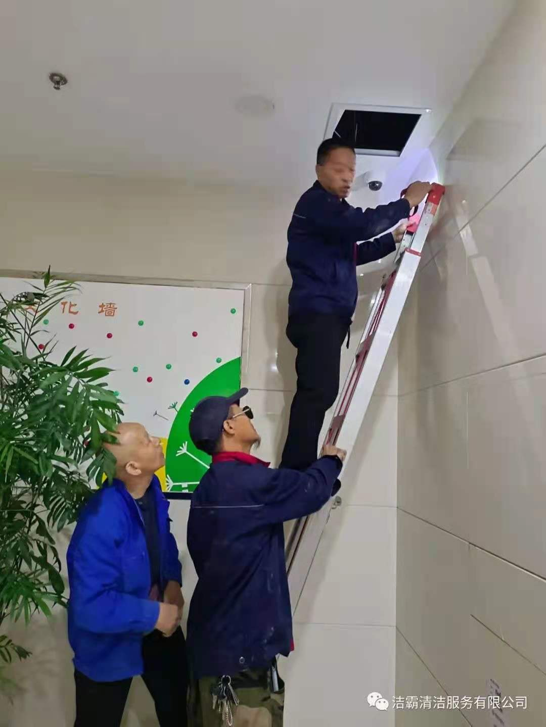 工程部的李新芳和郭軍田兩位師傅,有著豐富的工作經(jīng)驗,他們順著污水主管道,敲敲打打,根據(jù)聲音辨別堵塞部位。尋找病癥部位比較容易,但治療起來太艱難。管道在二樓與三樓之間,A單元樓下農(nóng)商銀行的天花板里。施工場地離地面四五米高,施工要爬高上梯且空間狹窄逼仄,天花板一處開口勉強(qiáng)能容一個人鉆進(jìn)去,給施工造成很大困難。
