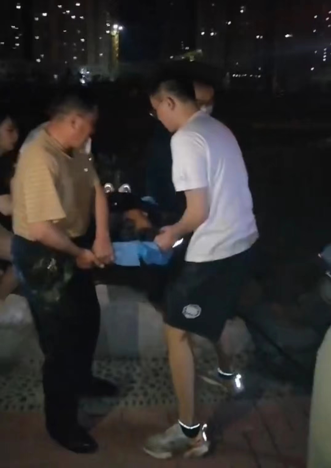 當(dāng)晚10時(shí)左右,保安隊(duì)長(zhǎng)毋海文剛從公園疫情卡口值班結(jié)束,回到管理房,一名年輕女子氣喘吁吁跑到管理房說(shuō)湖中有人落水,聽(tīng)到此消息,毋隊(duì)長(zhǎng)快速向事發(fā)地點(diǎn)跑去。到達(dá)事發(fā)地點(diǎn)后,湖水已浸到落水者頸部,只能看到落水者的臉部。市民已將湖邊設(shè)置的救生圈扔到湖里,毋隊(duì)長(zhǎng)和身邊一位90后年輕男子迅速跳入湖里,游到落水女子身邊展開(kāi)施救。晚上湖水較涼,加之落水者渾身已經(jīng)濕透,他們用力兩次才將落水女子平安救上岸。上岸后,落水女子呼吸微弱,觸摸其頸部有輕微脈搏,毋隊(duì)長(zhǎng)根據(jù)日常急救知識(shí)將落水女子采取側(cè)躺位,并拍打起背部,直至落水女子長(zhǎng)長(zhǎng)呼出一口氣,他的心才放下來(lái)。熱心市民撥打了110和120,醫(yī)護(hù)人員趕到現(xiàn)場(chǎng)對(duì)落水女子進(jìn)行體征檢查后,毋隊(duì)長(zhǎng)和醫(yī)護(hù)人員、熱心市民將落水女子抬上救護(hù)車(chē)?yán)玲t(yī)院救治。