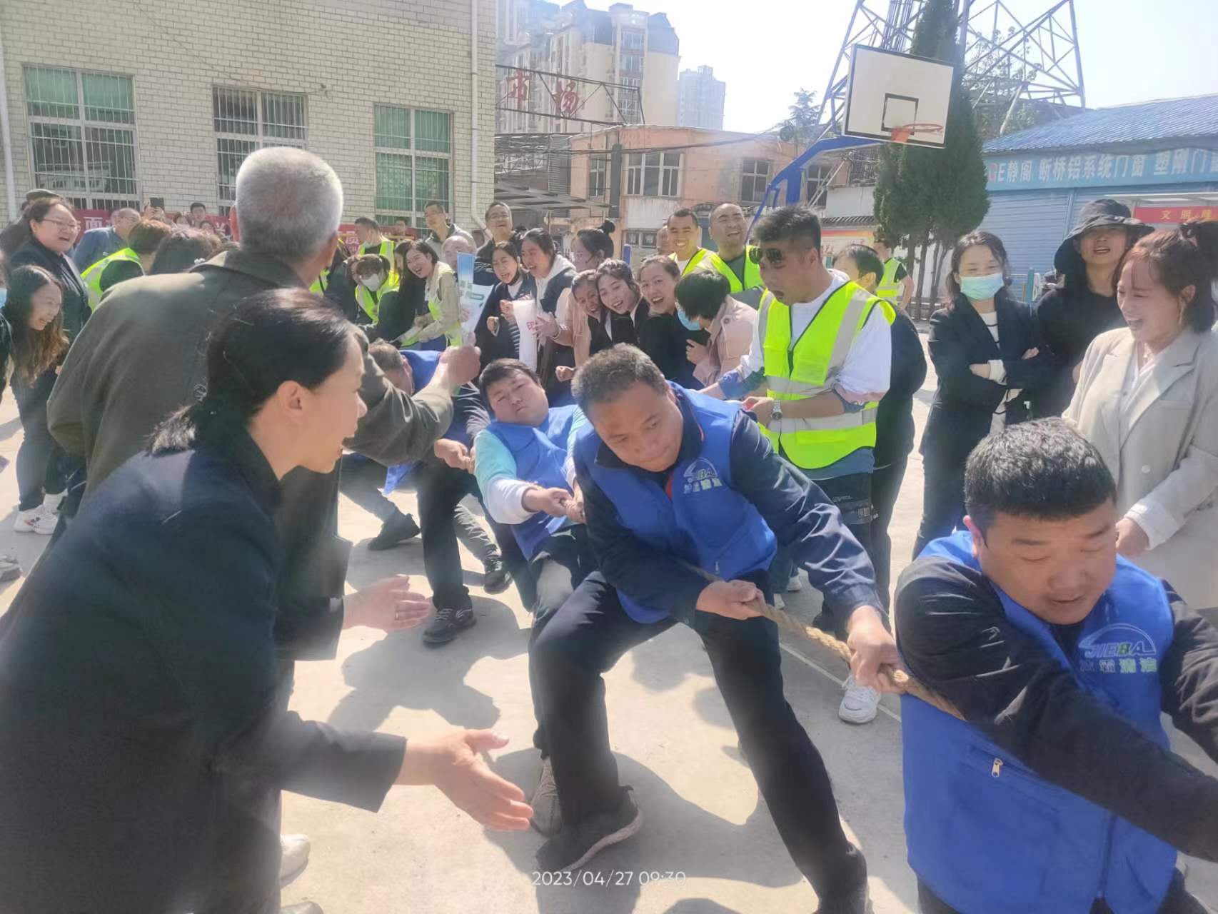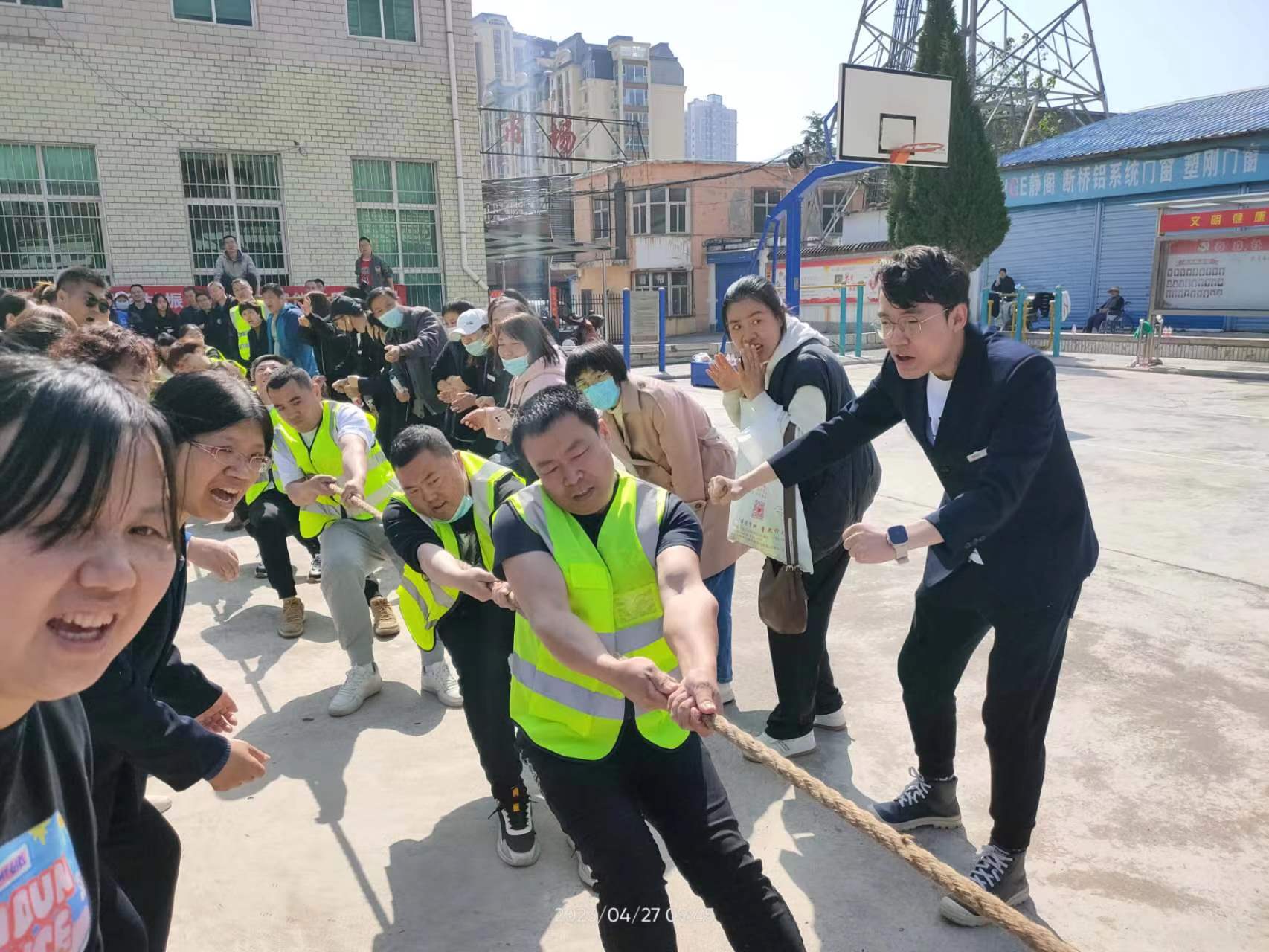 為了慶!拔逡弧眹H勞動(dòng)節(jié),營造良好的節(jié)日氛圍,4月27日上午,泰森社區(qū)駐地單位慶五一“潔霸杯”拔河聯(lián)誼賽在泰森廣場舉行。