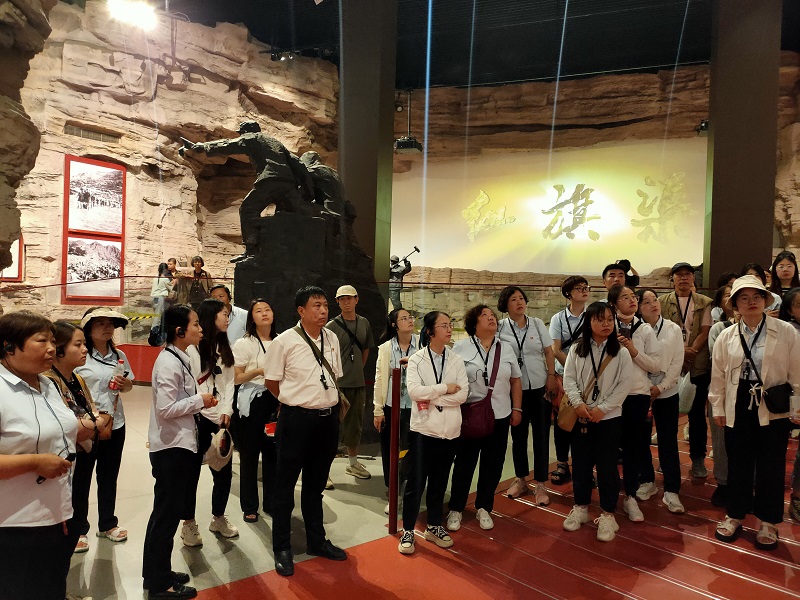 走進紅旗渠紀(jì)念館,大家跟隨講解員的腳步,在千年旱魔,世代抗?fàn)帲患t旗引領(lǐng),創(chuàng)造奇跡;英雄人民,太行豐碑;山河巨變,實現(xiàn)夢想;繼往開來,精神永恒五個部分逐一駐足學(xué)習(xí),通過一件件珍貴的物品,一幅幅生動的圖片、一幀幀震撼的畫面、一個個感人的故事,讓大家身臨其境感受到林州人民建造人工天河時不畏艱險,頑強拼搏,緊靠一錘一鏟削平1250座山頭、鑿?fù)?11個隧道、架設(shè)151個渡槽的恢弘場景。在場的各位都深深地被“自力更生、艱苦創(chuàng)業(yè)、團結(jié)協(xié)作、無私奉獻(xiàn)”的紅旗渠精神所感動,切實感受到中華民族勤勞堅韌的優(yōu)良傳統(tǒng),領(lǐng)悟社會主義是干出來的,新時代是奮斗出來的。