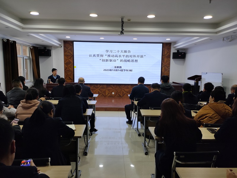 12月14日下午,公司舉辦“對(duì)外開(kāi)放”“創(chuàng)新驅(qū)動(dòng)”專(zhuān)題講座,邀請(qǐng)市商務(wù)局原局長(zhǎng)王新善圍繞二十大報(bào)告的重點(diǎn)內(nèi)容“推動(dòng)高水平對(duì)外開(kāi)放”“創(chuàng)新驅(qū)動(dòng)”等進(jìn)行宣講。