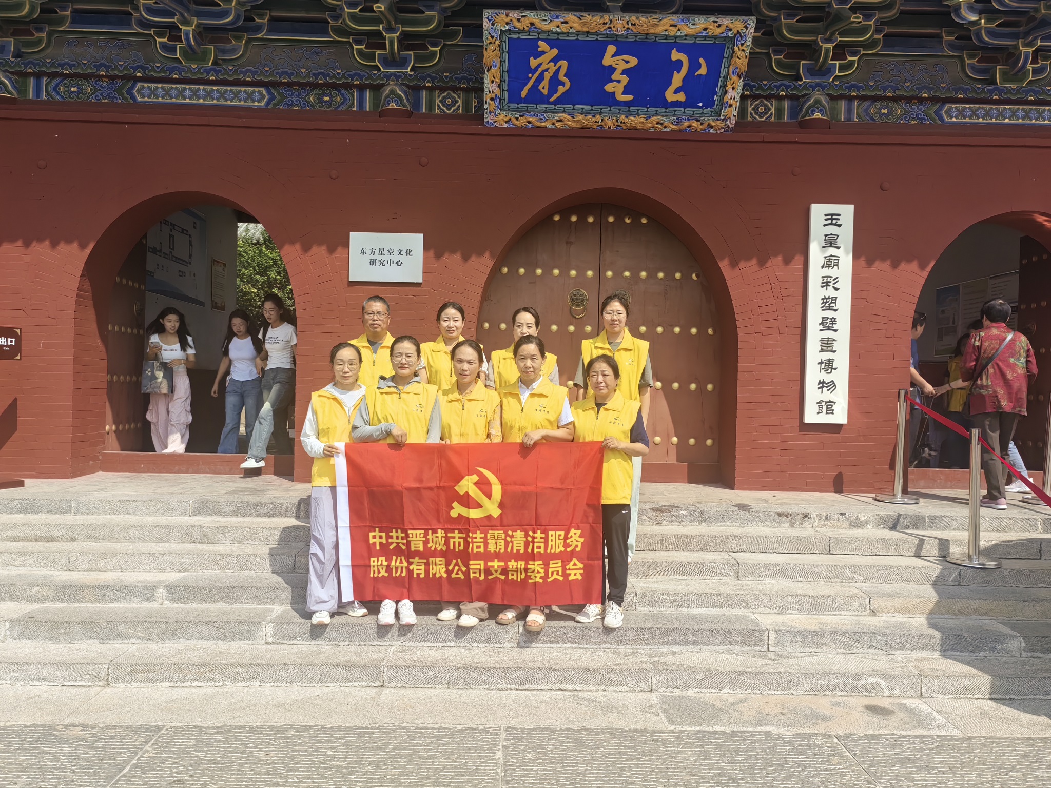 按照玉皇廟工作人員的安排,公司支部黨員和入黨積極分子化身為秩序維護(hù)員,在廟內(nèi)的不同區(qū)域配合安保人員開展文物保護(hù)、安全維護(hù)等工作。引導(dǎo)游客游覽路線;提醒游客看管好隨身物品;提醒游客在拍攝文物時不得使用閃光燈輔助光源,關(guān)閉相機(jī)對焦輔助燈;為游客看護(hù)寵物等等,積極為游客營造安全、有序的旅游環(huán)境。利用中午吃飯休息的時間,大家參觀了玉皇殿、成湯殿、二十八宿殿等,觀看了噓幻生真古代彩塑藝術(shù)展,了解了不同時期的代表性彩繪泥塑和制作過程,更加堅定了文化自信。